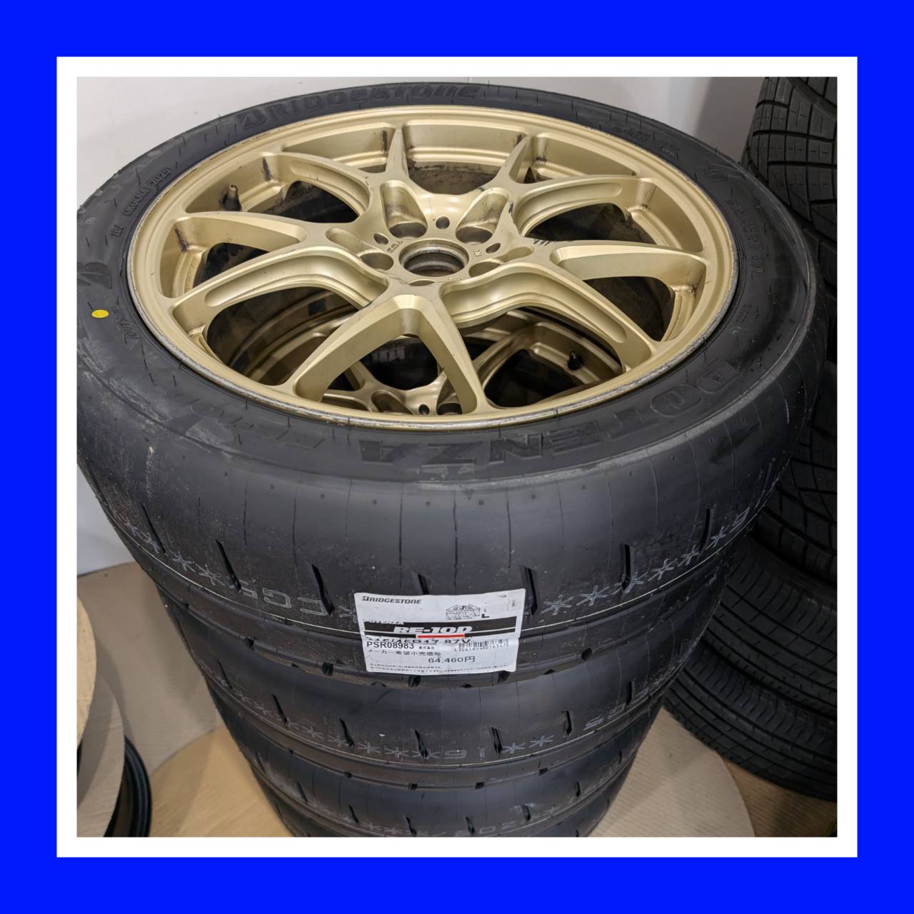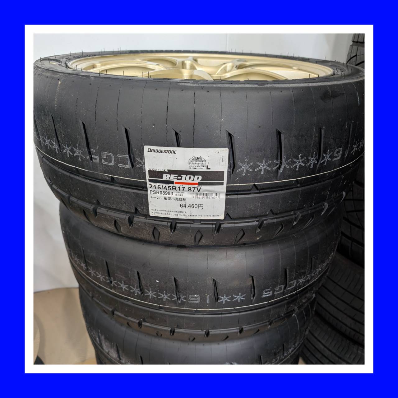 お客様がインターネットで購入された 215/45R17 ブリジストン ポテンザ RE-10D の組み替え作業、バランス調整を行いました。